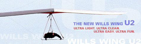 Each of these gliders will be available as demo gliders at Wills Wing’s 30th Anniversary Celebration to be held at Wallaby Ranch, March 25th through March 30th, 2003. Everyone is welcome to attend the celebration – there will be lots of demo gliders available to try out for free (you pay for tow) – including the two commemorative gliders, Talons, U2s, Eagles, and Falcon 2s – as well as seminars, prizes, and a party or two (also free). Very reasonable accommodations are available at the Super 8 motel just 2.5 miles from the Ranch, (877) 233 9888, be sure to tell them you are with Wills Wing / Wallaby to get the lowest rate. Come and join us!