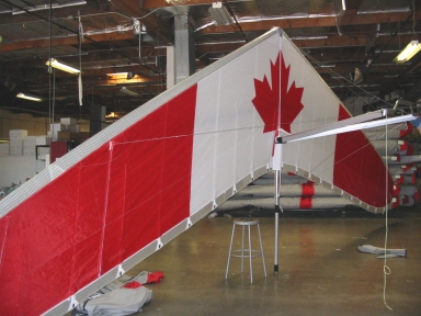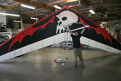 Wills Wing employee Josh Winstead shows off his brand new custom Sport 2 155. The custom sail inlay design was developed with help from Wills Wing’s paragliding department head Mitch McAleer, and Wills Wing designer Steve Pearson produced the digital patterns for cutting the sail on Wills Wing’s computer driven automated sail cutting machine. Wills Wing’s experienced sailmakers can produce a wide range of custom patterns to help you express your individuality in the design of your new wing. Quotations for custom sail work based on a representative drawing are available on request.