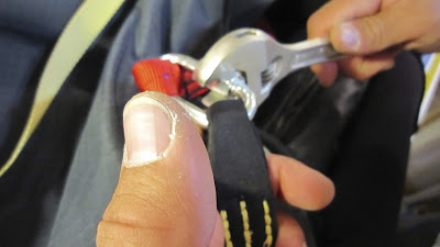 Your chute is now installed properly. It is helpful to flip the harness over and make sure the bridle is contained in the recessed area. I like to hang in the harness at this point as well. This starts the process of getting the chute to conform around your body and to make sure the quick link isn’t out of position causing discomfort. It’s been my experience that after about 10 hours in the harness, the chute will be nicely conformed to your body shape and increase the overall comfort of the harness.