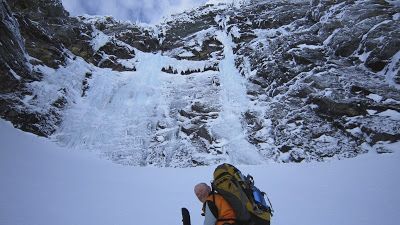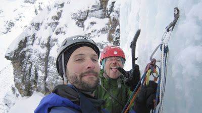 Other than Justin taking a chunk of ice to the face when a good sized “dinner plate” came off while placing his tool, cutting the bridge of his nose and giving him a pretty good bell ringer, we had a really fun day on the North face of Edwards. I yelled down to him as he was cleaning a pitch, “how ya doin dude?”. “Kinda concussed man” followed by a laugh that let me know he was still lovin it. Funny how many of us (that like to climb ice) have that scar across the bridge of the nose. When he arrived at the belay, it was agreed that we were lucky indeed. That place is always good training…. for something;-)