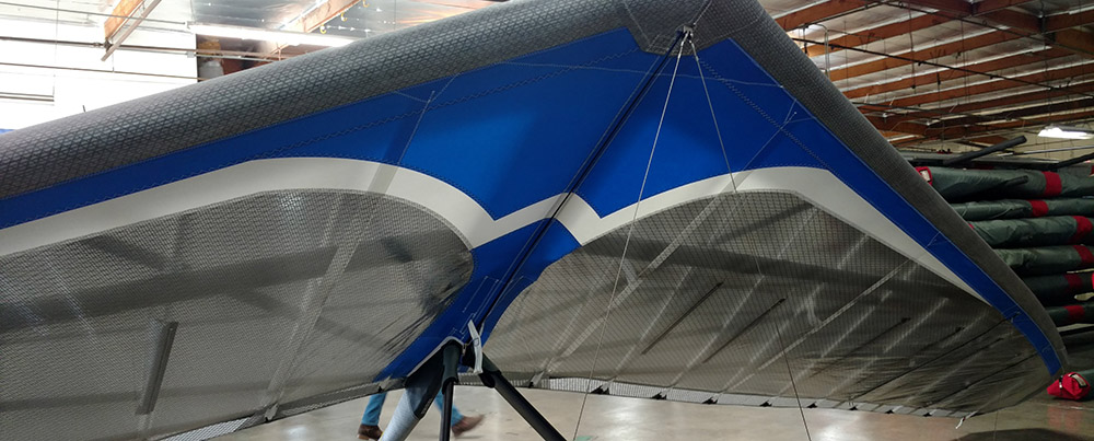 The new composite leading edge inserts are made from high-temp Kevlar and carbon fiber pre-preg and are produced at Wills Wing in high-pressure closed aluminum molds. They precisely fit the leading edge airfoil curvature and have additional geometric features to make them stiffer than simple carbon sheets. Compared to conventional inserts, these inserts are longer, lighter, don’t compromise the handling and support the leading edge panel far more effectively at higher speeds. ACLER inserts are standard on the Team Edition and optional on other trim levels.
