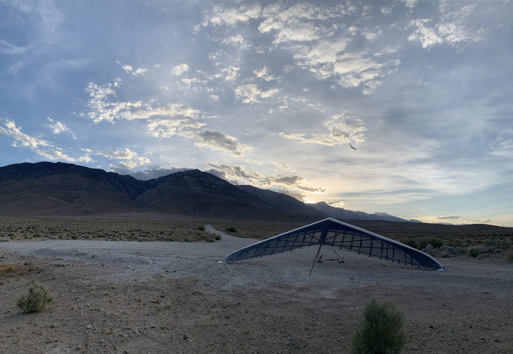 I launched Walt’s Point (elev: 9,300 feet) as early as I thought reasonable (9:41am Pacific time). Though I found lift right away, I wasn’t able to climb above 10,500 feet as the westerly winds seemed to be blowing the light lift apart. Wishing I could depart the mountain above 11,500 feet (but fearing that I was burning daylight) I pushed east to tag my start/finish waypoint in the valley along highway 395. From the moment I left the mountain, and until I returned, my vario was silent. Though expected, it was unsettling to be looking up the side of the Sierra Nevada range from 7,000 feet. It was a long slog to get reestablished, but my patience was finally rewarded with a climb that put me back in the game.