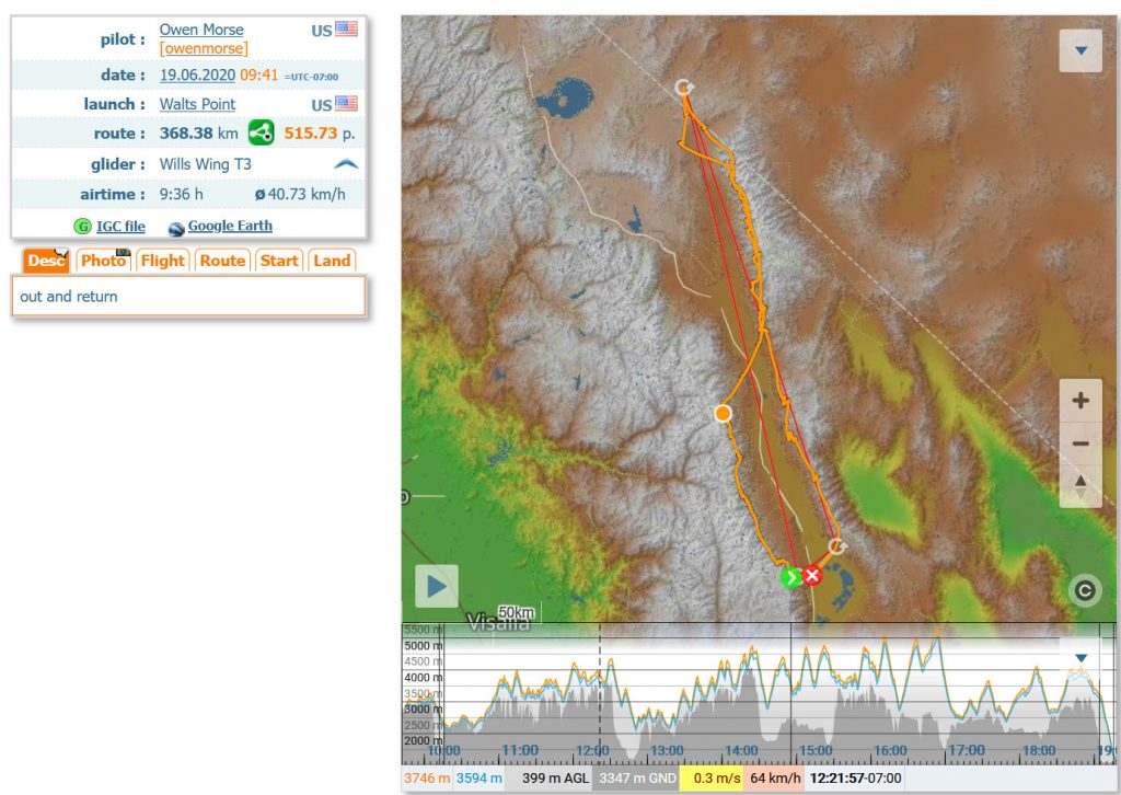 On June 19th, 2020 the winds were forecasted to be light and variable throughout the day at most elevations. Though there were not going to be any clouds along my planned course line, usable lift was expected to be just above 18,000 feet. Only two days before the summer solstice, I knew the number of daylight hours were on my side. The other thing I had going for me this year, was my new wing.