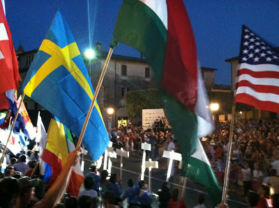 And now we await the first task of the 18th worlds. For now, it’s an ongoing party as old acquaintances keep reappearing in corners of the small village of Sigillo. We were fortunate to get a few days of great flying off the south launch up on Cucco before the start of the comp. The rest of the nights have been spent partying, and the days hiking – there is a trail from nearby Costaciarro up to the top of Monte Cucco that has one of the best continuous inclines I’ve ever found. More than 3000 feet of punishing single track with probably 95% of the trail at a continuous grade. Yesterday my mom and I made the climb to the 1566 meter peak in a little under 1:30. Clouds were raging by starting about 50 meters below peak height as they joined a growing cu nim between the mountain range and the Adriatic sea.